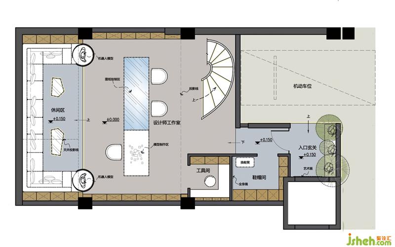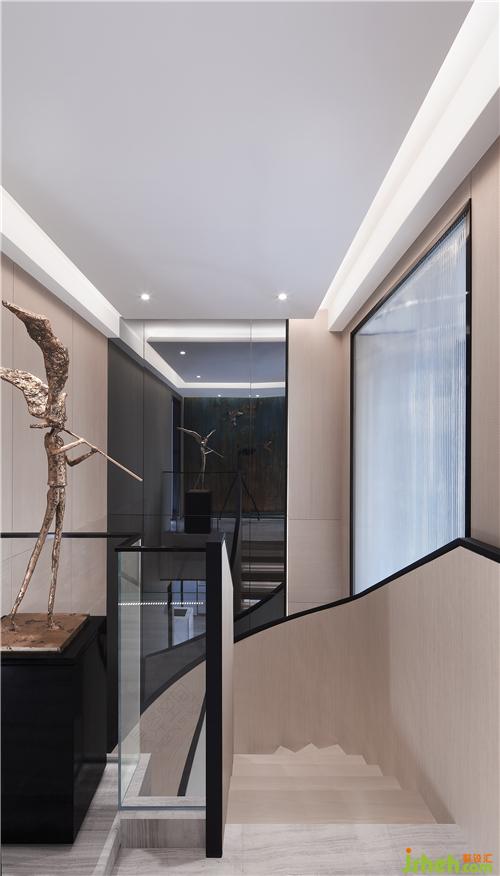 旋轉(zhuǎn)樓梯貫穿整體空間,猶如大型雕塑串聯(lián)著每層過廳的藝術(shù)品,產(chǎn)生趣味性的情景對(duì)話:晚色從陌生的樹木中走來,成都樣板房設(shè)計(jì)像夜間的小路,正靜悄悄地聽著回憶的足音?!按档焉倌辍痹谝惶庫o靜的吹奏,