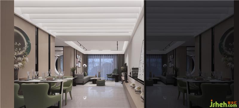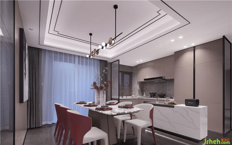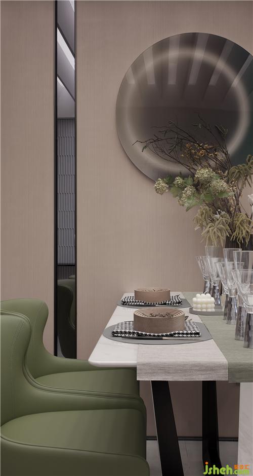餐廳沒有做過多的裝飾,簡單的造型在柔美燈光氛圍下,為生活增加了幾分浪漫的元素。長沙樣板房設(shè)計簡單的一桌四椅,一家人一起品嘗美味,一片其樂融融。