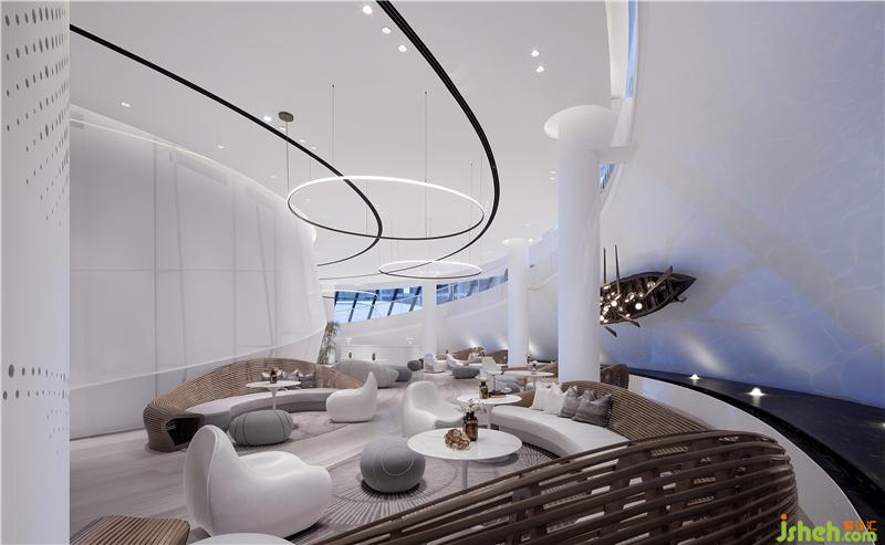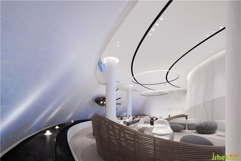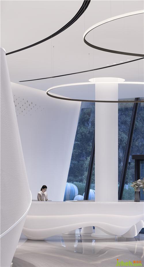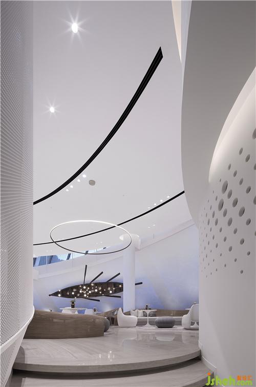 整個藝術(shù)中心內(nèi)部空間的設(shè)計靈感緣起于鳳凰衛(wèi)視這枚舉世聞名的“鳳凰標識”,鳳和凰幻化成兩只手合抱成一個不斷旋轉(zhuǎn)循環(huán)的球體,像極了中國的太極圖案,由無玄化出萬物,又像西方的莫比斯環(huán),無限的循環(huán)往復(fù),恰好暗合了西方佛學(xué)關(guān)于鳳凰的哲學(xué)義理,涅槃重生是鳳凰全部存在的意義。