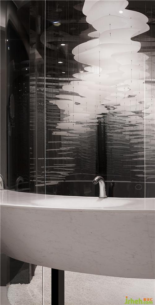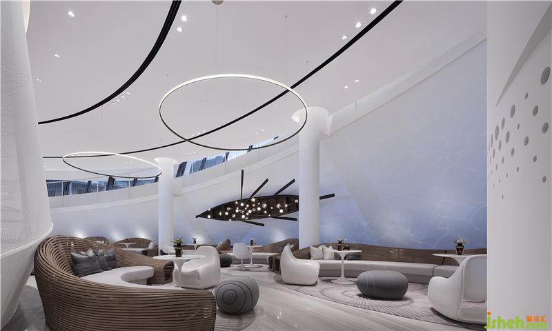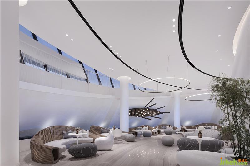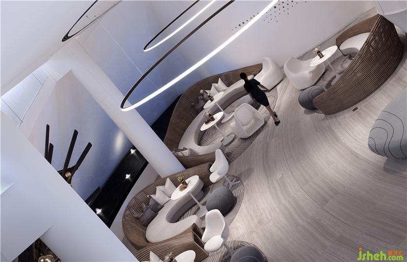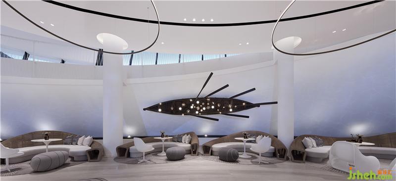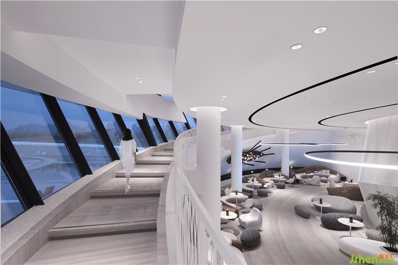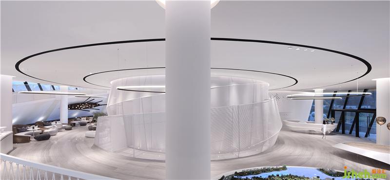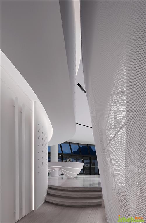 巨大的連接整個(gè)建筑上下層空間,銜接室內(nèi)空間和室外360度環(huán),陽朔山水景觀的環(huán)坡階梯,售樓處設(shè)計(jì)使參觀者拾級(jí)而上的整個(gè)過程,都能感受到充滿夢幻的喀斯特地貌景觀,并是將莫比斯環(huán)的設(shè)計(jì)邏輯在建筑上再一次宏觀重構(gòu)。