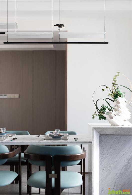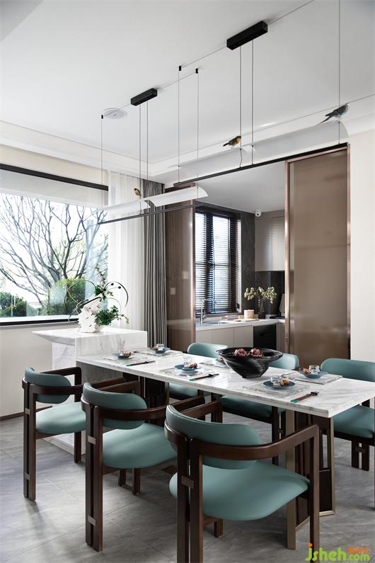 餐廳,歡言得所憩,美酒聊共揮。餐廳返景入林,綠植點(diǎn)綴,錯(cuò)落有序吊燈,一幅林間美景,富有自然肌理感和溫潤質(zhì)感的大理石,搭配簡約素雅的皮革、面料,勾勒出空間低調(diào)優(yōu)雅而不失溫馨的高級(jí)氣質(zhì)。