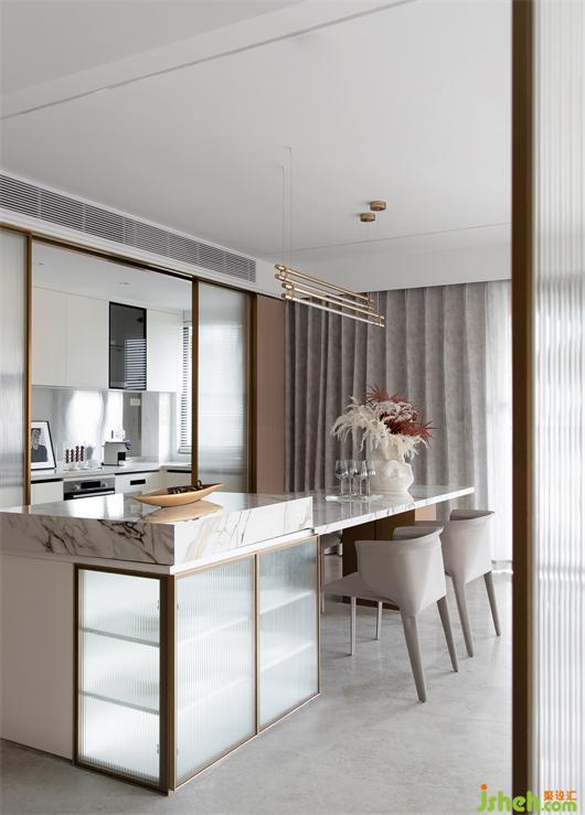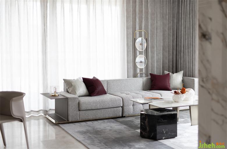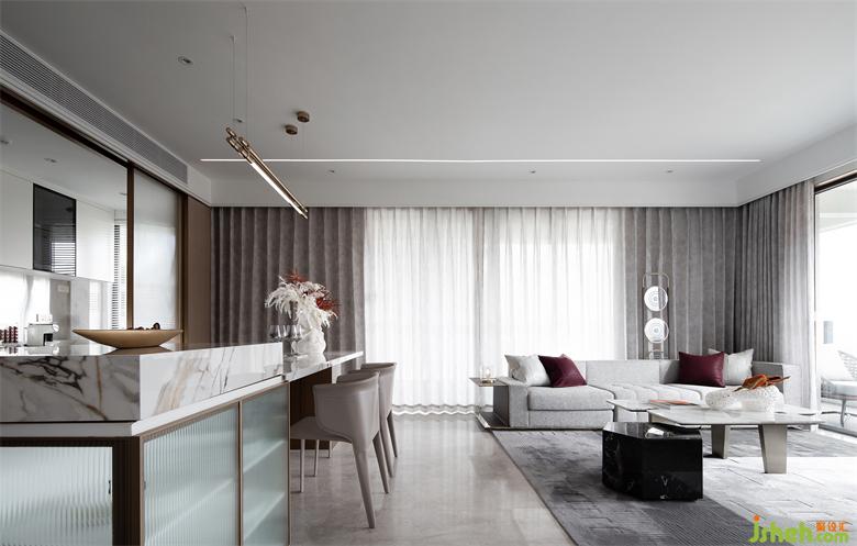 客廳270°環(huán)景的設(shè)計讓自然光線最大限度滲透進(jìn)來,樣板房設(shè)計在不同的立面照射出不同的色澤,光形成影,光影之間的轉(zhuǎn)變顯得更鮮明層次,空間也就有了靈魂。有了生命感,更加讓開放式公共空間消融了社交與生活的邊界。