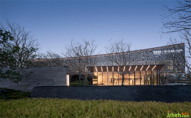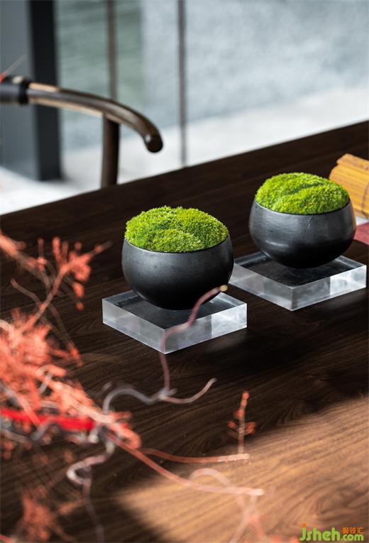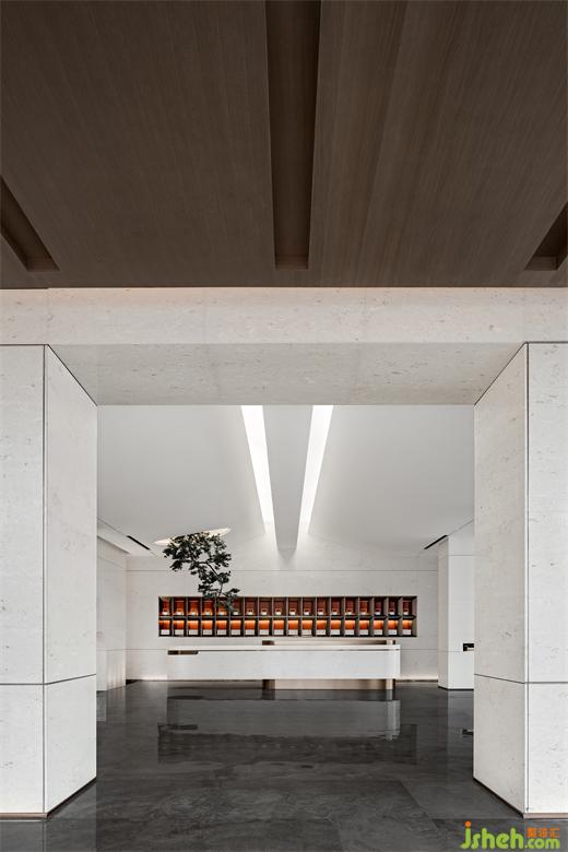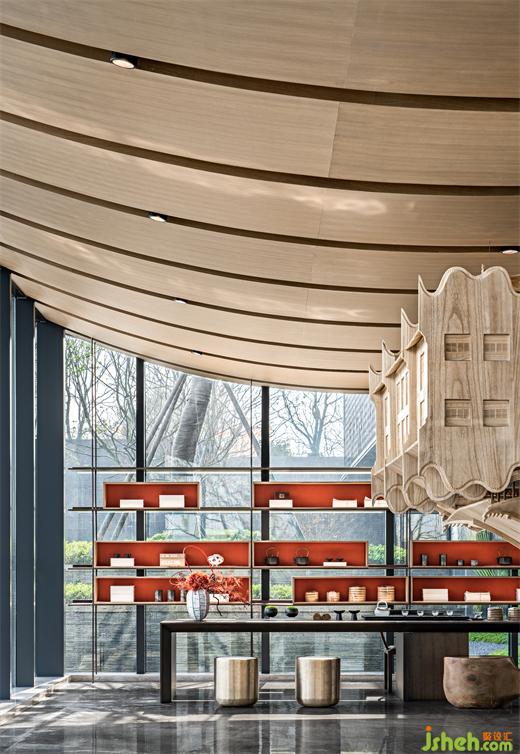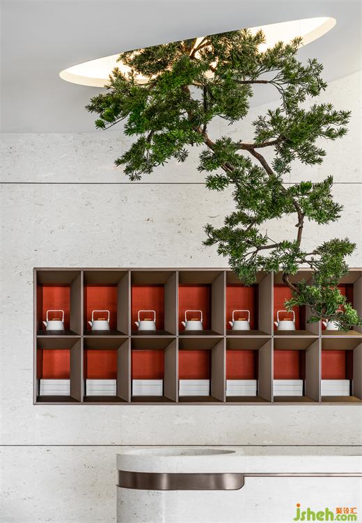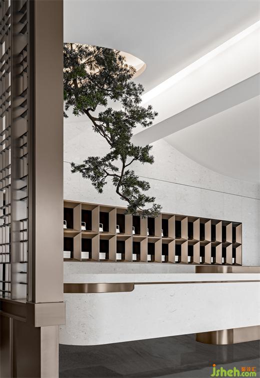 漫步入內(nèi),長(zhǎng)沙售樓處設(shè)計(jì)以松為記,寓意“迎客”,號(hào)曰《岳麓松風(fēng)》?!?