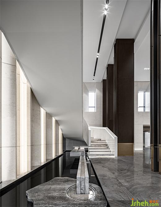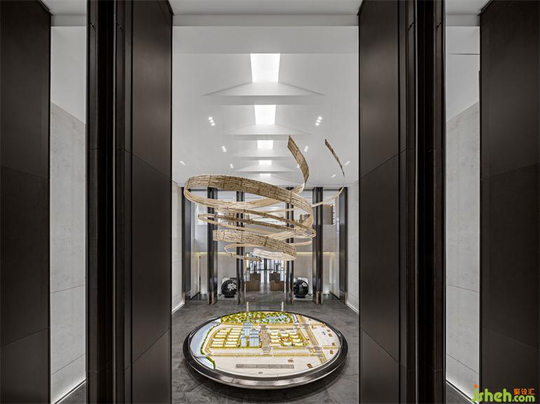 轉(zhuǎn)過身,目光所及,即為整個項目的靈魂所在-《浮城藝術館》,巨型雕塑《浮城》用岳麓書院的主體古建群落以適當?shù)谋壤€原,長沙售樓處設計再以藝術手法重組,重新詮釋,重構(gòu)對物境的理解。湖湘文化與現(xiàn)代藝術之間的碰撞和交融,衍生出新的含義和觀感,給人以“猝不及防”的巨大震撼感和視覺沖擊。浮生若夢的幻境在此恰又實實在在,真真切切。