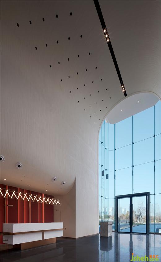 建筑是空間的藝術,而音樂是時間的藝術。兩者雖有不同,但原理相通,都講究節(jié)奏和韻律的美感。售樓處設計建筑作為一個靜止的空間藝術,同時又具備時間藝術的特點。通過在空間內部的穿行中逐步鋪陳開來,利用節(jié)奏的高低起伏,虛實進退的變化,來表現(xiàn)出如音樂般抑揚頓挫的律動和旋律感。