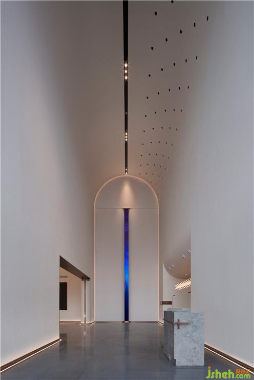 作為主入口的第一空間,帶著些許“神圣”,與門外喧鬧的世俗空間形成一道天然的屏障。達到第一重參觀情緒-“敬畏”與“虔誠”。