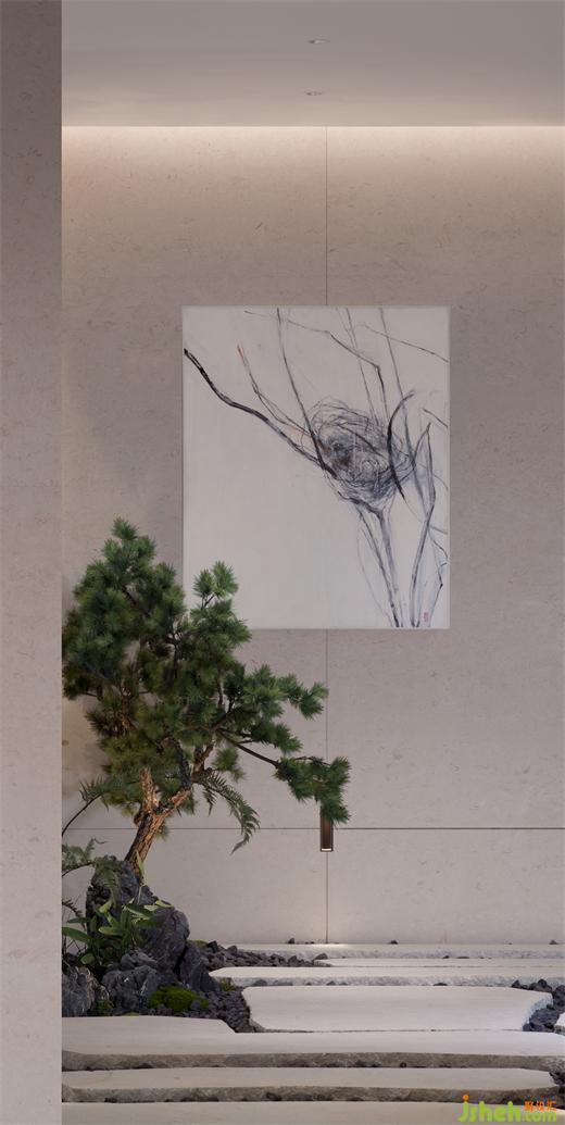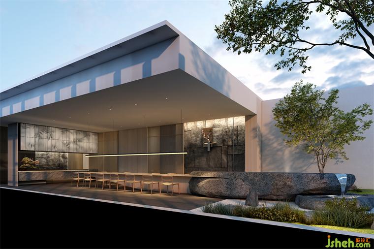 《世說新語》中枕石漱流因口誤,成就了今天漱石這樣一個大意境,也成為我們設(shè)計師如何通過空間視覺圖像來影響感召人的思想情緒的永恒源泉?!貧w林泉,是人內(nèi)心永恒不滅的主題,當(dāng)然要獲得如此的精神自由,一切都要物質(zhì)基礎(chǔ)作為支撐。所以這里不僅可以做頂級的日本料理,還可以做行云流水的鐵板燒,一壺清酒聽泉漱石。