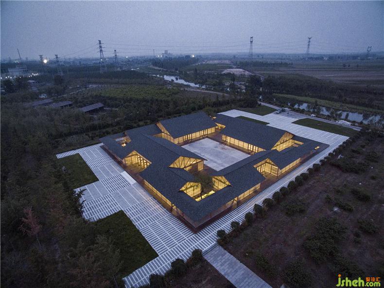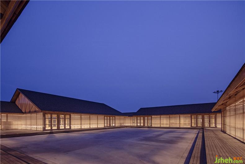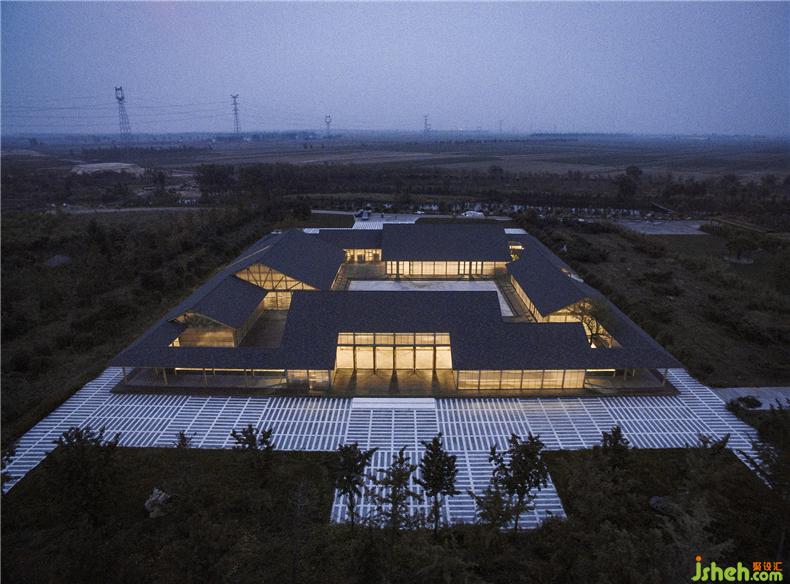 整體建筑由四個相對獨(dú)立的房屋圍合而成,裝修設(shè)計(jì)分別是原料庫、磨坊、榨油坊、包裝區(qū)。內(nèi)庭院作為糧食的曬場,圍繞內(nèi)庭院形成便捷的工作循環(huán)流線。建筑的邊界是聯(lián)通四個分區(qū)的外部游廊,這是參觀糧食作坊的流線。中心庭院向建筑四周錯落延伸,拓?fù)浣M合成為多層次的庭院空間,滿足廠房的自然通風(fēng)、采光及景觀需求,裝修設(shè)計(jì)保持良好的室內(nèi)外空間品質(zhì)。院與房的有機(jī)聯(lián)系使得建筑在一個完整的大屋頂下產(chǎn)生多種跨度的使用空間:小尺度的游廊、中等尺度的房間、大尺度的廠房,裝修設(shè)計(jì)可以彈性的適應(yīng)加工作坊的復(fù)合使用要求。