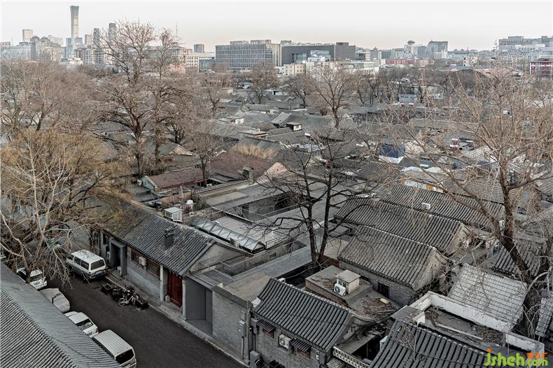 項目位于北京東城區(qū)錢糧胡同一片院落之間,占地面積約410平方米。別墅裝飾原有建筑并不是四合院常見的坡頂建筑,而是幾個相互分離的磚混平頂房。平頂房應該是四合院某一時期被改建的結果,別墅裝飾在舊城之中也有不少這樣的房子。場地分前后兩個部分,前部是一塊空地,包含兩個磚房和一棵老樹;后部是一個U形建筑體,玻璃屋頂蓋住了內(nèi)院。別墅裝飾舊建筑結構老化,房間狹小封閉,缺少基礎設施,已經(jīng)無法滿足當代生活的使用,需要徹底改造。改造之后的建筑將出租給潛在的客戶,別墅裝飾需要滿足可辦公、可聚會、可居住的彈性使用。因此,本次改造的主要挑戰(zhàn)是:如何基于現(xiàn)存條件做恰當?shù)牟鸶?,增加建筑空間的活力,回應不確定的功能。