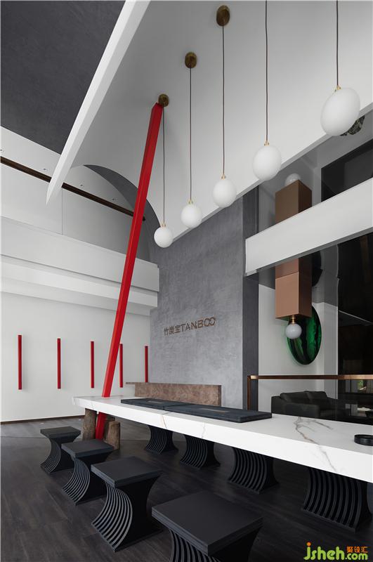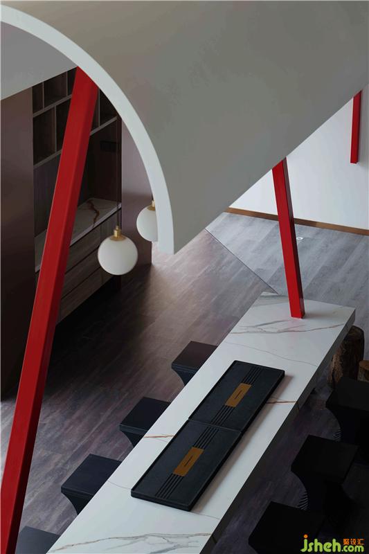 輕松的基調,在刻意打造的沙龍場域中蔓延,試想我們可以在此進行不只是公事上的一切日?;顒樱阄医允苎渲?。林彥認為設計的底色是【突破限制】,因此讓兩根方管去撐起一整塊實心大理石,石料在沒有“下地”的日子里,將承載多個重要“角色”這是【技術與藝術】的結晶,亦是【竹?!繉τ跇O致態(tài)度的前導語言。