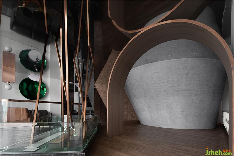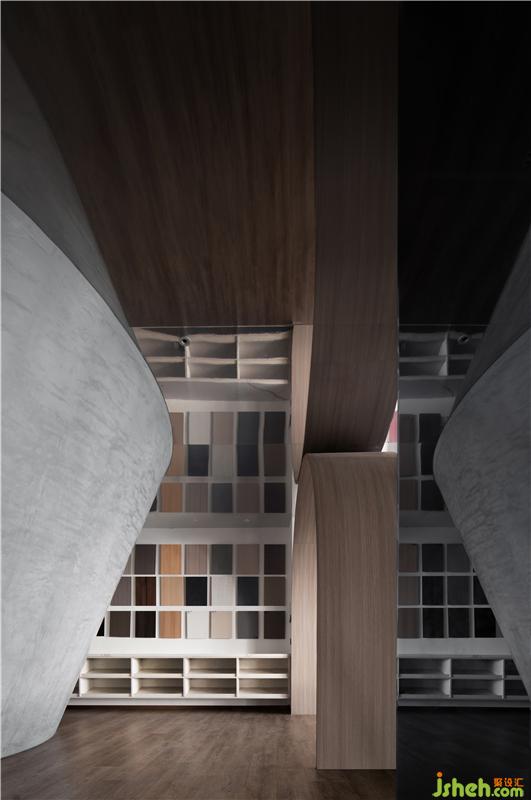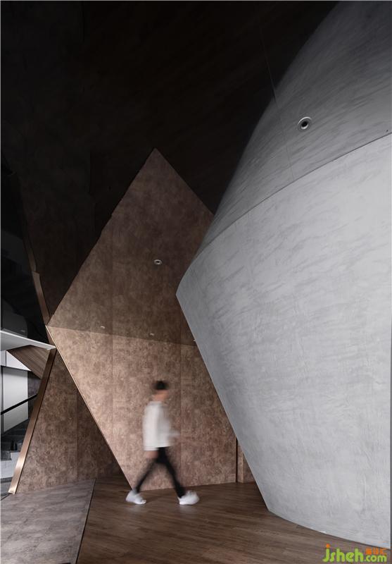 被【竹炭板】包裹起來的洽談空間,遁入蟲洞般的空間折疊,猶如愛麗絲迷失仙境,縱橫交錯模糊了邊界,迷失了尺度感,在白日里“秉燭夜談”,與“互聯(lián)網(wǎng)”爭奪用戶注意力是實體經(jīng)濟刻不容緩的思考。