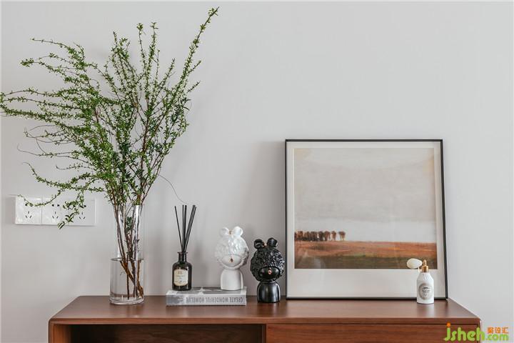 整體設(shè)計(jì)以現(xiàn)代簡(jiǎn)約+北歐風(fēng)格進(jìn)行發(fā)揮,空間主格調(diào)定義為“精簡(jiǎn)、休閑、時(shí)尚、亮麗、自然”幾個(gè)關(guān)鍵詞,期望營(yíng)建一個(gè)賞心悅目、輕松舒適的優(yōu)質(zhì)居所。硬裝從簡(jiǎn),從玄關(guān)延伸至客餐廳墻面的涂裝板造型,其中暗設(shè)了主臥隱形門與隱形儲(chǔ)物柜。全房定制柜體的收口、空調(diào)百葉的處理以及衛(wèi)生間淋浴區(qū)、飄窗臺(tái)大理石等做法細(xì)節(jié)都力求極簡(jiǎn)并體現(xiàn)品質(zhì)??臻g設(shè)計(jì)的重點(diǎn)和亮點(diǎn)在于軟裝設(shè)計(jì),例如材質(zhì)、圖案、色彩、家具、陳設(shè)、布藝、花藝的選配控制。在硬裝界面質(zhì)感色調(diào)都比較光滑平淡的前提下,軟裝設(shè)計(jì)在各區(qū)域的裝飾搭配上尋求變化與層次。