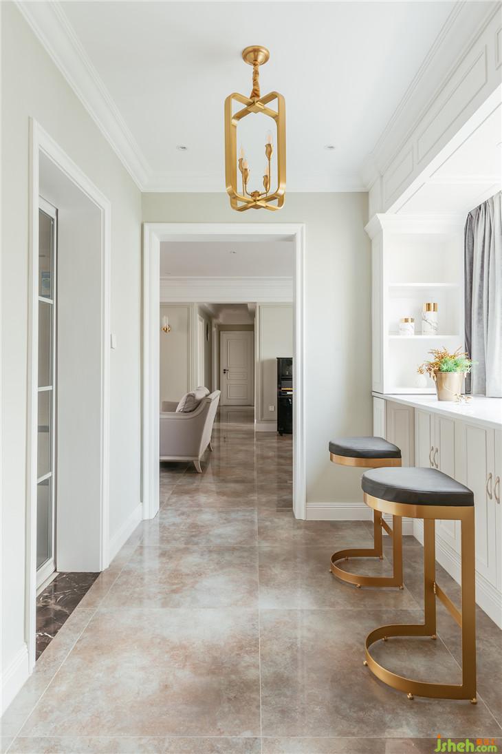 全房設計遵循暖灰調(diào)、淺色系、協(xié)調(diào)色的基調(diào),硬裝與家具依然歸于簡約美式,但地磚、燈具、飾品、裝飾畫等均撐起室內(nèi)不同場景的亮點。我們希望這個家是安靜的、時尚的,像奶茶一樣香香的、暖暖的。