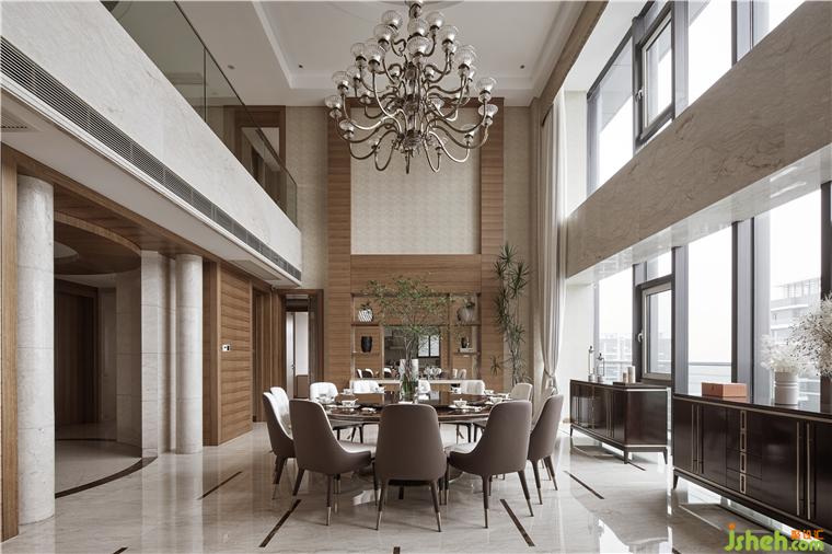 餐廳在溫色域里渲染大理石與原木的濃郁與內(nèi)斂,交織色彩的雙重特性,暈散出大氣奢華的居家想象。家裝設計中,桌插的樹柳,北美胡桃木拼花桌,精致的瓷具,意大利小牛皮餐椅,無不傳達著獨特的港式精致。