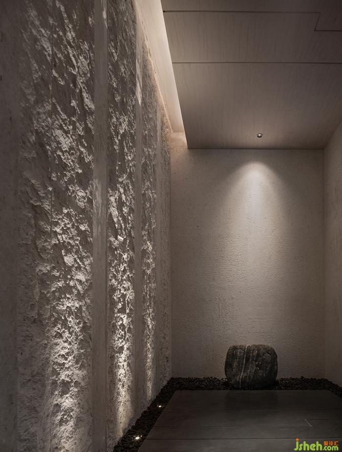 Into this space, flowing stone expression techniques in contemporary form transformation, value reproduction. Connecting the wall of the original straw mud paint, ink stone, green plants to decorate. Intervene light, create space artistic conception under moonlight. On the plane, the layout of backswimming is adopted, and the translucent inside and outside of the end scene is connected, so that people, nature, space, harmony and harmony together.