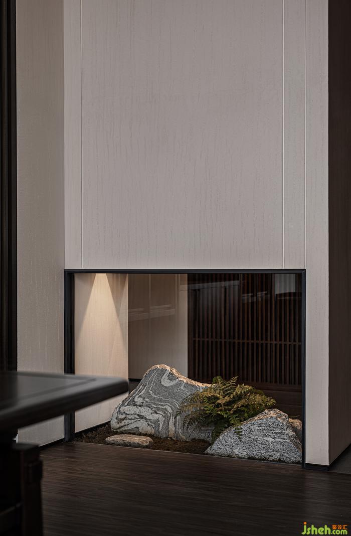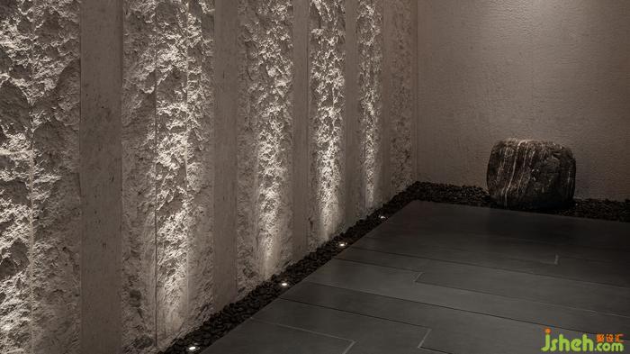 The hallway specially uses the curved line and surface combination design expression form, combines the contrast of rough surface and smooth surface of stone with light, so that this three-dimensional space becomes the artistic tension of installation, and feels the light and shadow situation like the moon in the experience.