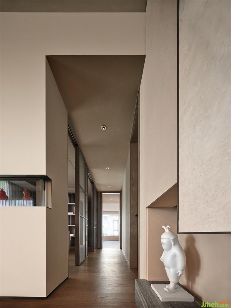 過(guò)道延伸著空間細(xì)節(jié)的溫和與優(yōu)雅,理性的陣列美學(xué)、厚重感與現(xiàn)實(shí)得以結(jié)合。