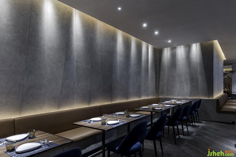在半封閉的包房之中,在共享式長(zhǎng)餐桌之上,設(shè)計(jì)師以數(shù)百盞光纖燈打破空間原有的框架,自高空此起彼落地垂吊而下,構(gòu)成了室內(nèi)空間中獨(dú)有的無(wú)垠森林,讓光影錯(cuò)綜與自然林景的輪廓結(jié)合,交織出自然神秘的用餐氛圍。