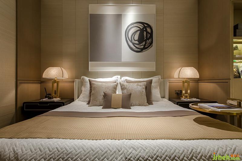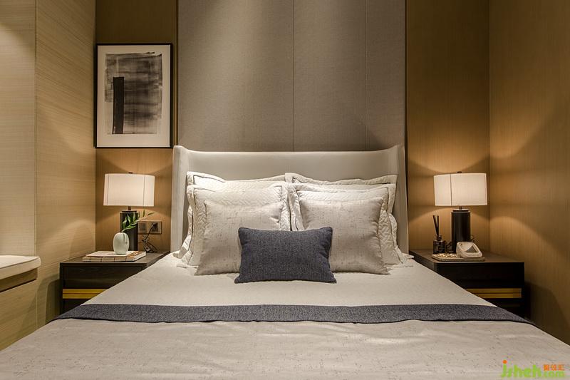 主臥的空間線條干凈簡潔,如澄瑩水色平流緩進,設計師再采用淡雅的色彩語言增添溫潤質(zhì)感,摒棄過于繁瑣的裝飾,以精美壁畫、造型不一的坐燈以及詩意陳設物品來讓整個空間顯得清靈雅致,又極具現(xiàn)代機能。