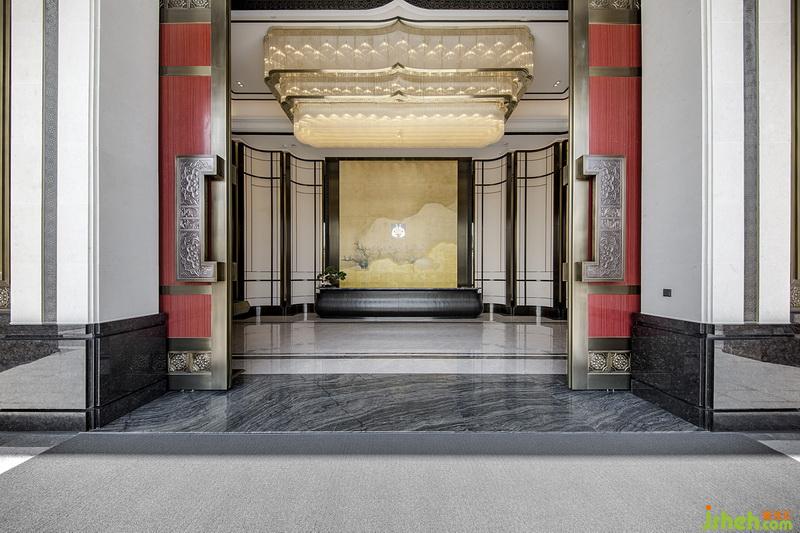 進(jìn)入大堂,以“秀水明山”為主題的畫作先抓人眼球,前臺接待處背景墻采用山水畫作的裝置,使得耳目所及的山水狀貌聲色之美蔓延至室內(nèi),從而緊扣當(dāng)?shù)卦娨獾木吧c文化。