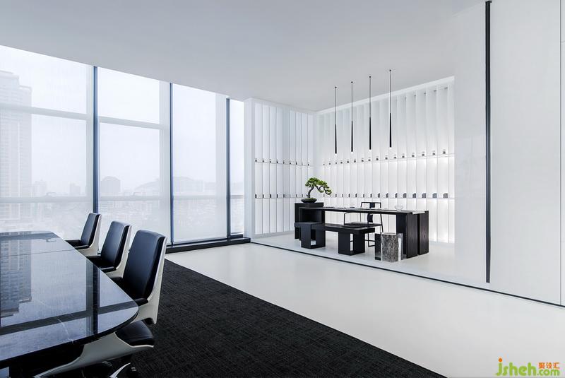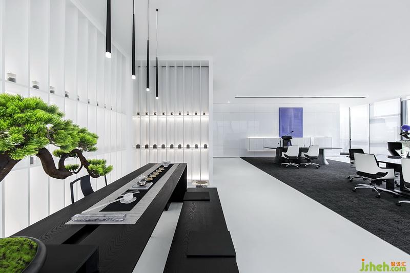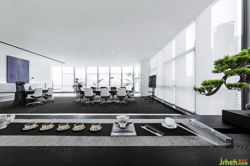 總經(jīng)辦增設(shè)茶藝區(qū),采用新的現(xiàn)代手法,于室內(nèi)造雅致之境。木質(zhì)茶臺送古韻,蔥綠盤景點詩意。茶香飄于室內(nèi),慰藉日常的疲勞。