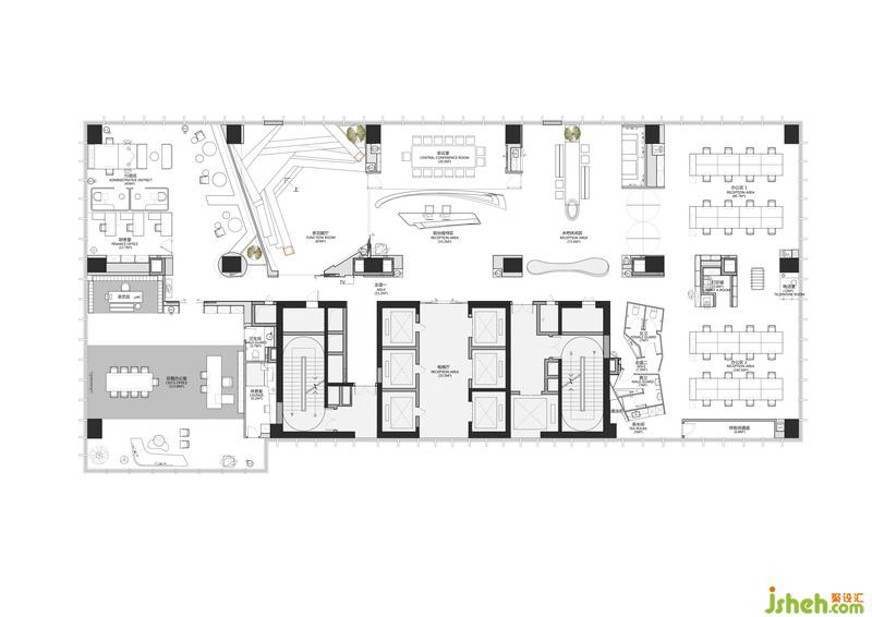 項(xiàng)目原貌為公寓性格局,各個(gè)空間相互封閉獨(dú)立,且空間原始粗獷,活動(dòng)動(dòng)線較為單一。設(shè)計(jì)師重新整頓整體格局,將各個(gè)空間打通,形成開闊清朗的環(huán)境,再將空間依照不同的功能劃分為公共區(qū)域、開放辦公區(qū)以及封閉辦公區(qū),豐富了空間的層次。