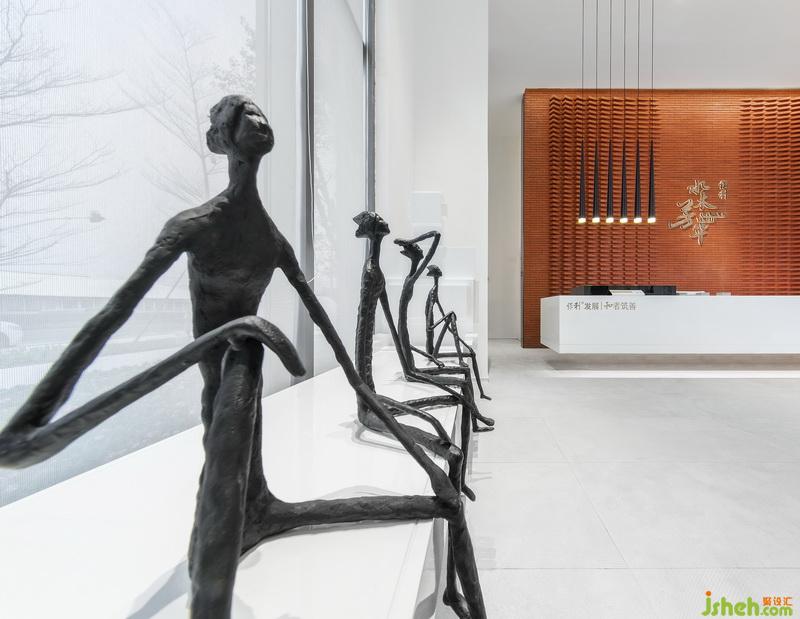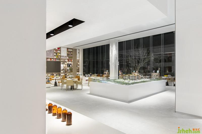 隨著動(dòng)線(xiàn)步入洽談區(qū),仿若無(wú)意中闖入了知識(shí)的曠野。整面書(shū)墻以及隨處可見(jiàn)的書(shū)柜凸顯出“水木芳華”的文化符號(hào),搭配溫潤(rùn)的原木材質(zhì),將項(xiàng)目的文人氣質(zhì)發(fā)揮到極致。