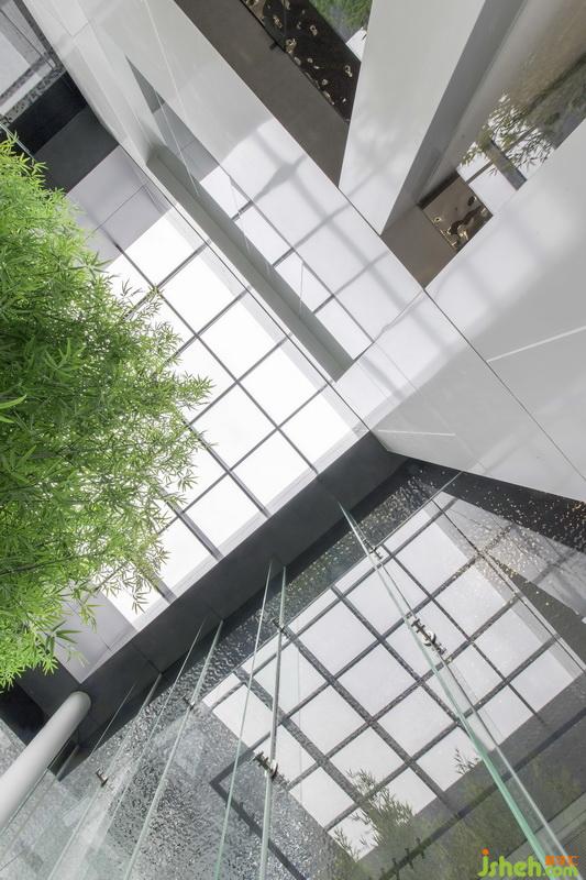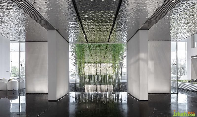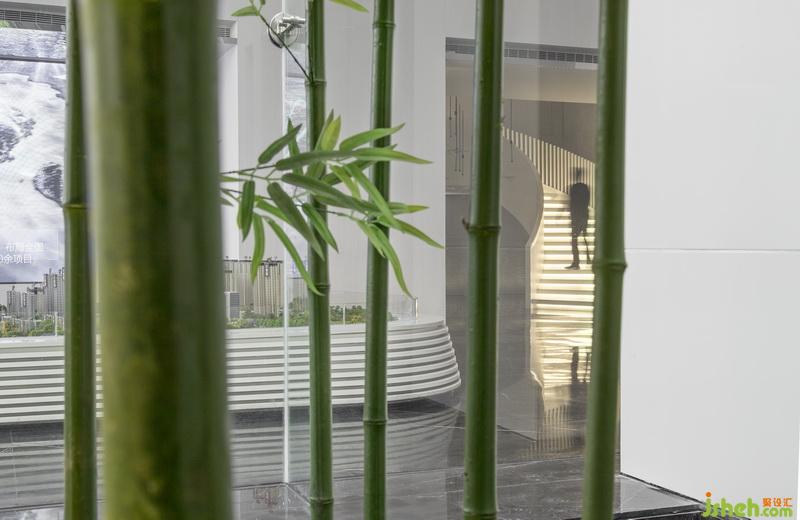 縱觀本案平面,空間結(jié)構(gòu)宛如密封的盒子,卻有水有景,實(shí)現(xiàn)空間與自然的相融。設(shè)計(jì)師于室內(nèi)開辟一處天井,天井中植一叢竹,造一方竹林。綠竹挺拔,蒼勁有力,青翠欲滴。風(fēng)起,竹搖,倒影于室內(nèi),引微涼入室。
