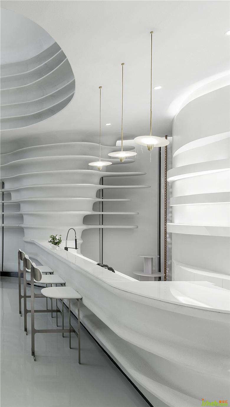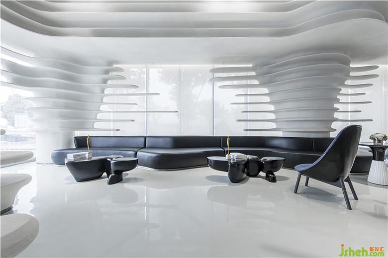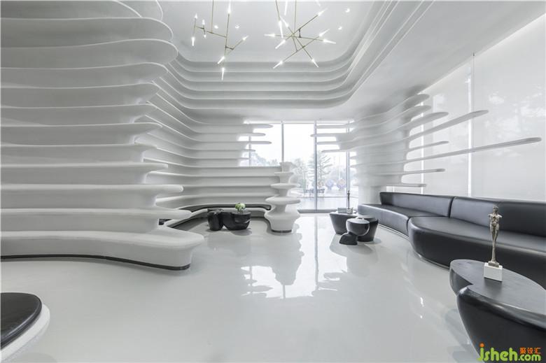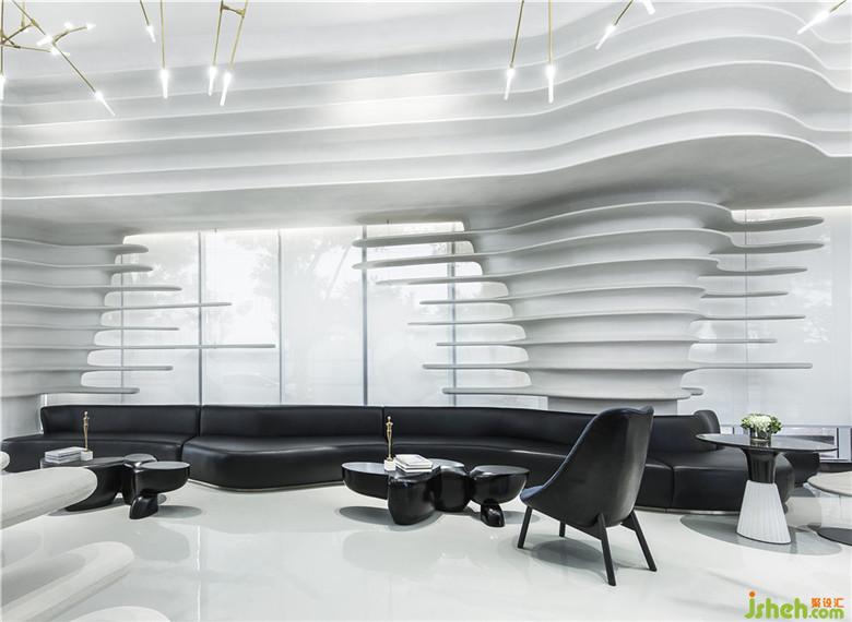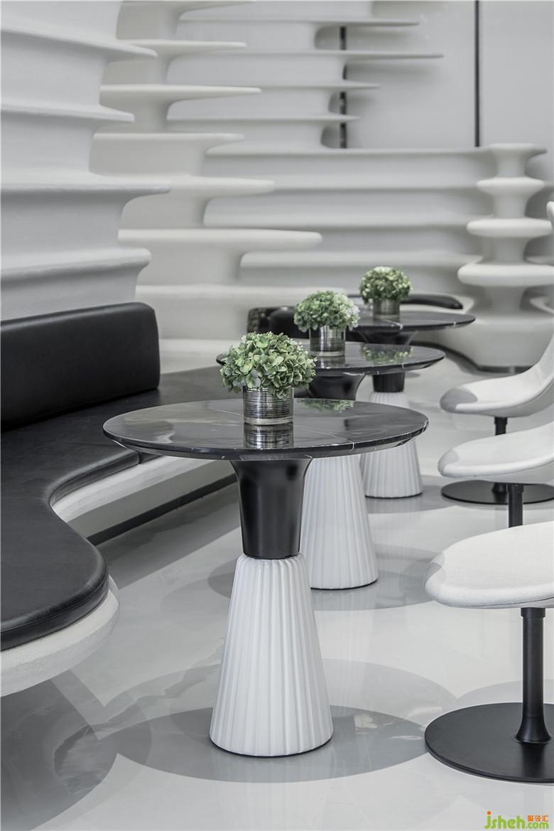 座椅采用弧形設(shè)計(jì),回應(yīng)空間的主題,亦加強(qiáng)了交流。因空間的留白手法,人變成了空間的主體,同時(shí)也是空間流動(dòng)的藝術(shù)品。