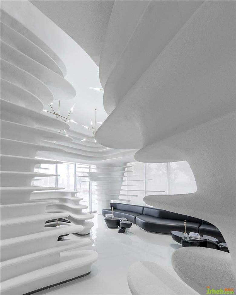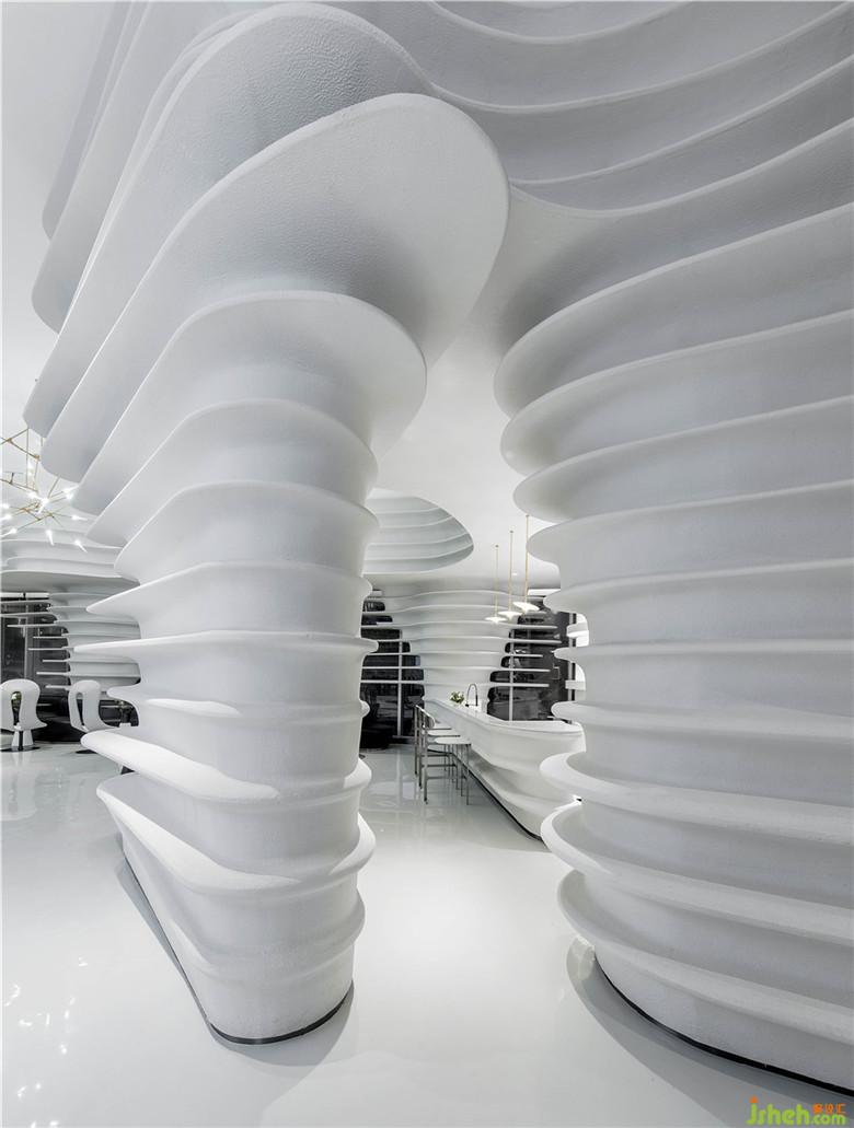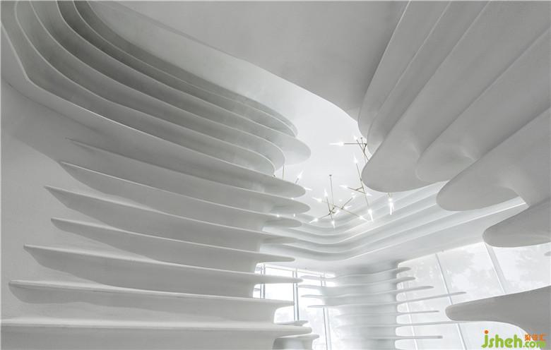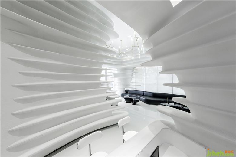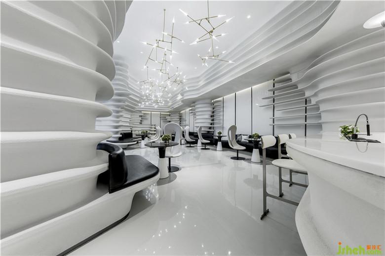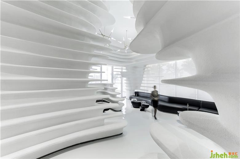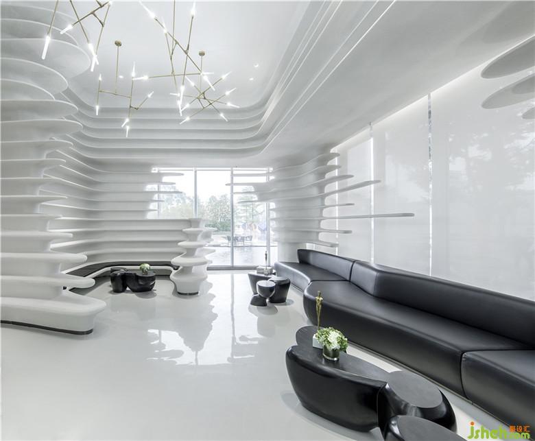座椅采用弧形設(shè)計(jì),回應(yīng)空間的主題,亦加強(qiáng)了交流。因空間的留白手法,人變成了空間的主體,同時(shí)也是空間流動(dòng)的藝術(shù)品。