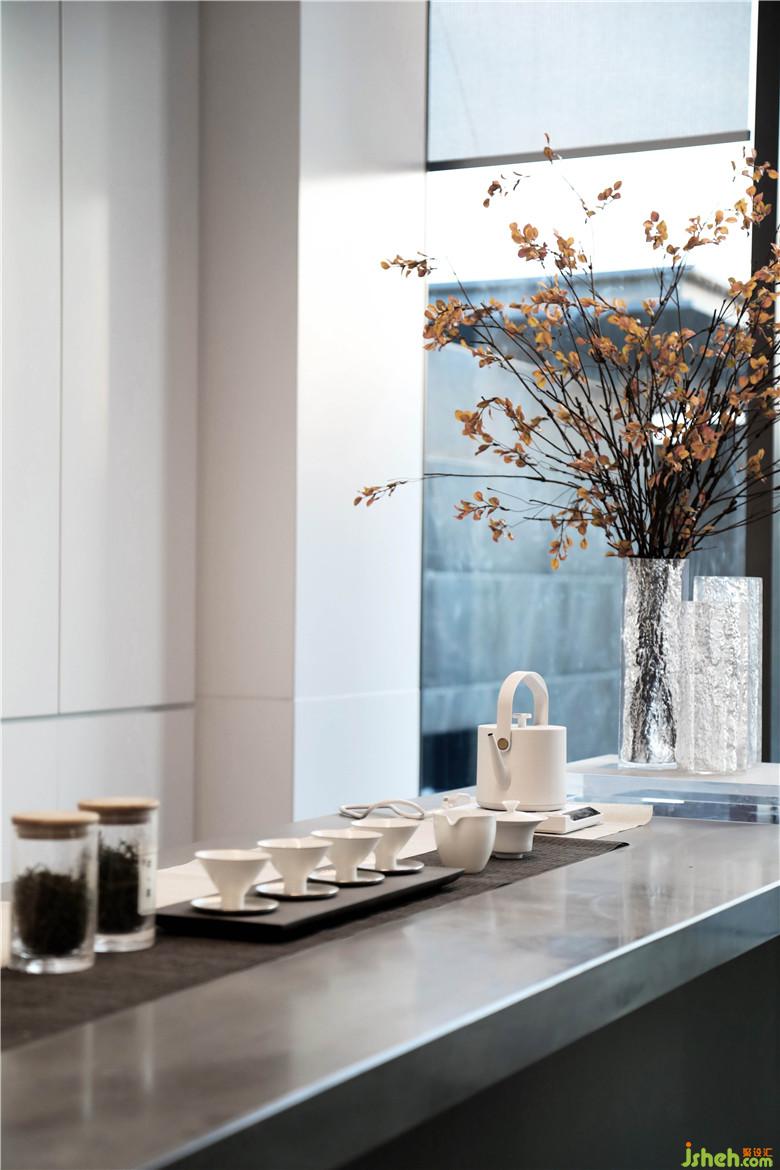 水吧區(qū)線條干凈簡約,素雅花藝讓局部更柔美,茶香飄揚于室內(nèi),無事閑坐,望水聽風,品茗于此,享受此刻之間的愜意。