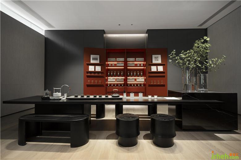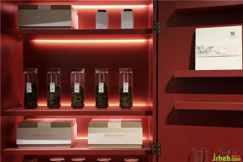 VIP簽約區(qū)的紅色茶柜宛如一個打開的寶盒,陳列著各樣茶品,端莊紅色點亮空間,與黑色茶臺相互映襯。往空間中置放一抹綠,延續(xù)自然靈動。