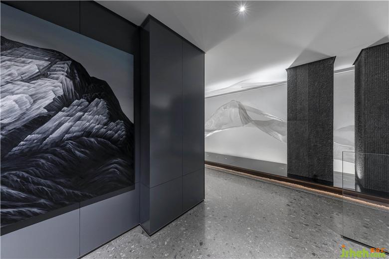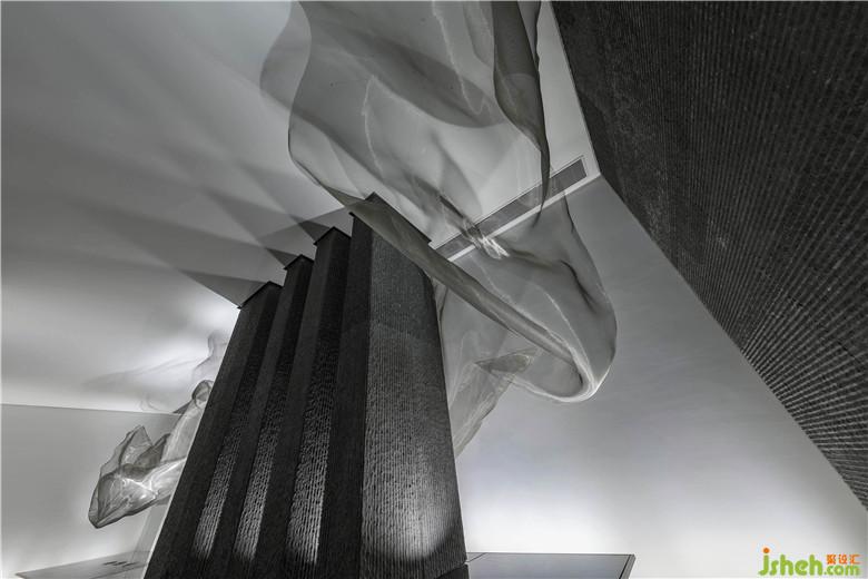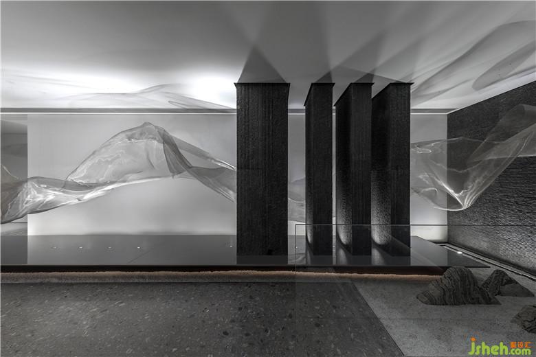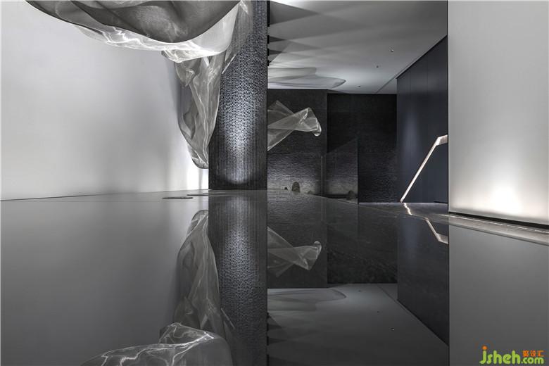 南京河流眾多,盈盈流水哺育了當?shù)氐奈拿鳌9试O計師將水漾記憶捕捉,水流蜿蜒之形化為藝術(shù)裝置,流動于空間當中,以此形成韻律。這股溪流澄澈綿長,宛如淌過“橋梁”,淌過“山”,同時又頗具水汽氤氳彌漫之感,構(gòu)建出生動的藝術(shù)意象。會所設計