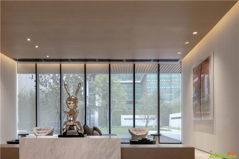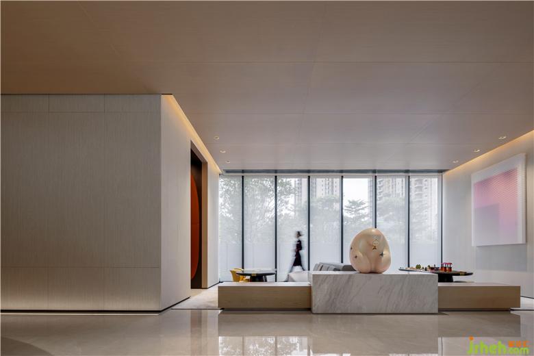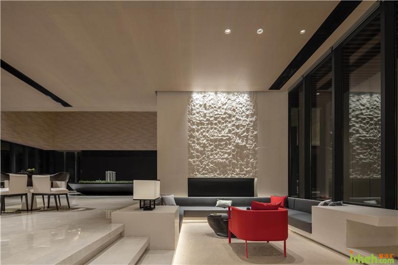 設(shè)計(jì)中提取了山石的紋理,售樓處設(shè)計(jì)構(gòu)建洽談區(qū)墻面的肌理,粗糙的材質(zhì)與細(xì)膩的空間表達(dá)形成鮮明的對(duì)比,讓空間充滿著自然般的詩(shī)意氣質(zhì)。