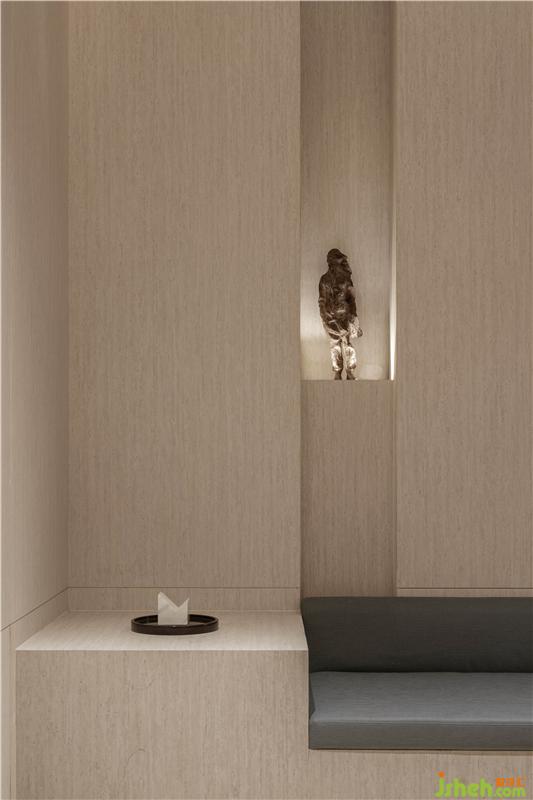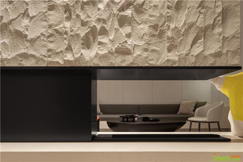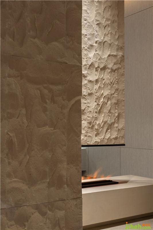 售樓處設計極簡的壁爐設計,簡約的家居線條,及精心擺攝的藝術品,增強空間的體驗感。