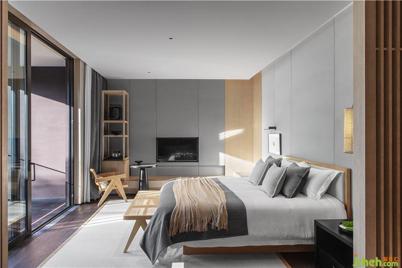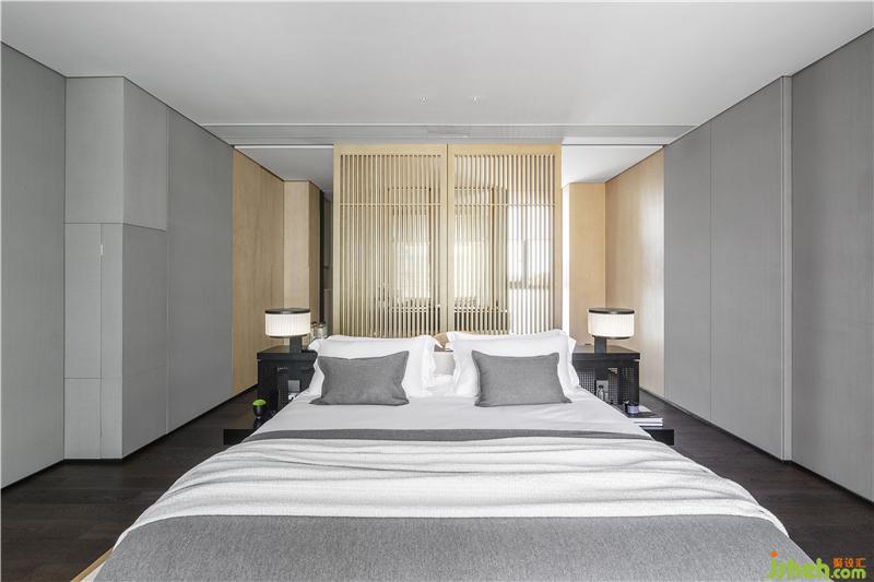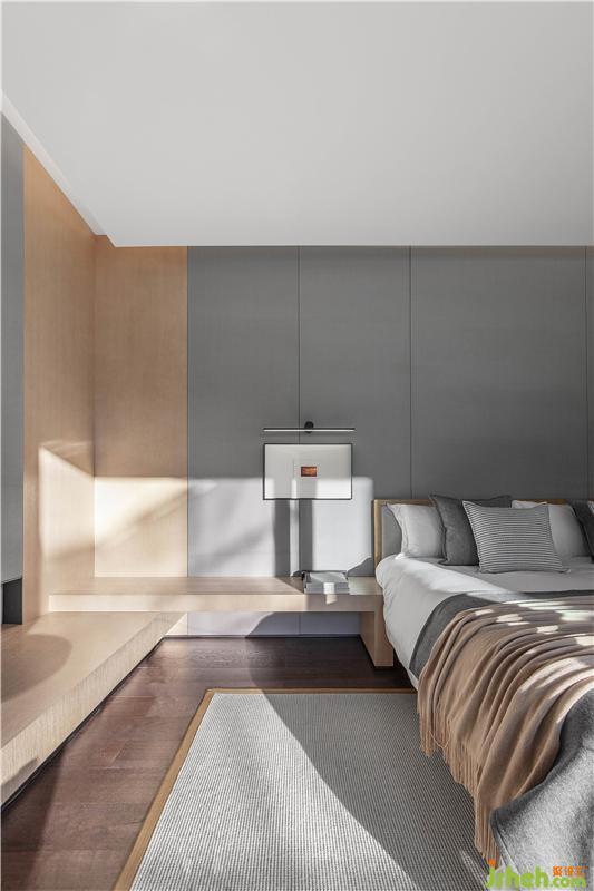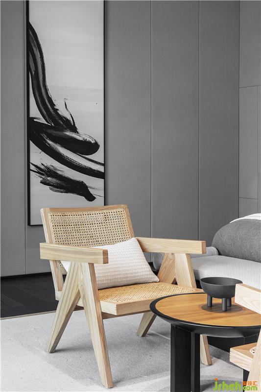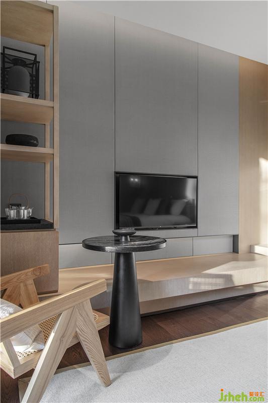 在空間本質美的構建上,回歸到素凈的材料及色調??头恳曰疑鳛榭臻g的基底,再以木作的溫潤進行調和,力求呈現(xiàn)出生活的純粹,回歸空間質美。當多余的精美加工被去除,而回歸物料以及色調之本真,整個空間呈現(xiàn)出純粹的架構。