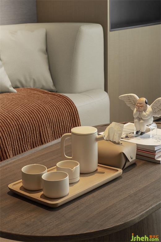 軟裝則采用編織、布藝等溫潤(rùn)的材料,樣板房設(shè)計(jì)讓人在觸感上感受到舒心。溫和的木飾面與布藝的糅合,玻璃與啞光金屬的銜接豐富材質(zhì)的觸感,溫馨的燈光照映下,整體的軟裝搭配,結(jié)合親膚的沙發(fā)布藝,空間底色是如此地溫柔。