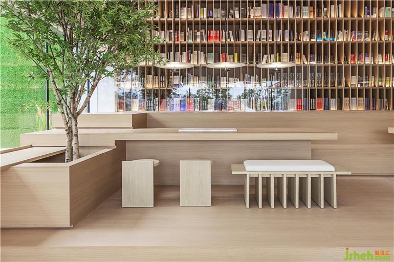 木質(zhì)的溫暖讓人感到平和及放松,營造舒適的氛圍,人們走入空間中,銷售中心設計將注意力更多關注到閱讀本身。隨著空間動線逐漸步入知識的曠野,室內(nèi)恰到好處的綠植運用,為閱讀場景增添了自然的氣息。