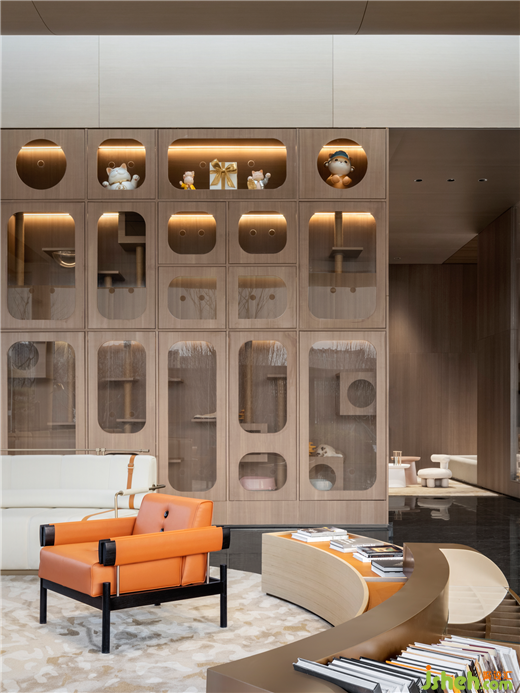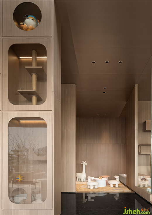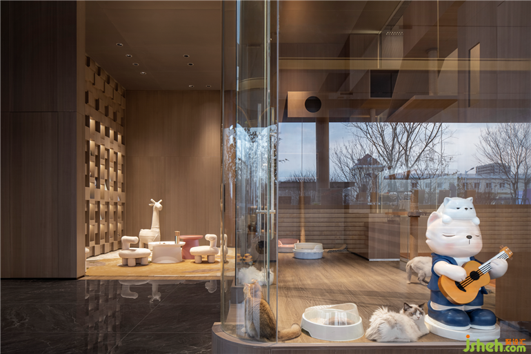 青島卓越蔚藍(lán)群島瀧樾設(shè)計(jì)以年輕群體為主導(dǎo)的擼貓消費(fèi)市場(chǎng),是年輕一代任性又細(xì)膩的精神需求。場(chǎng)所一角設(shè)置沉浸式擼貓?bào)w驗(yàn)空間,透明櫥窗內(nèi),不同品種的貓咪在其中自由穿梭,為都市人群呈現(xiàn)出治愈心靈的畫(huà)面。
