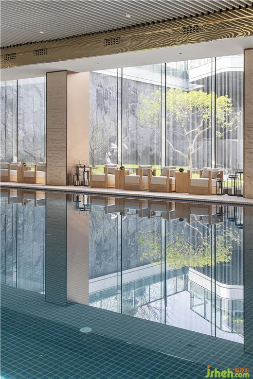 泳池猶如甲板上一躍而下的樂趣,氣流在半空穿行,而視覺的重力在下部不斷凝聚。東莞卓越悅山湖花園銷售中心設計以匹配國際豪華住宅的標準,晴熙云翠臻造東莞少有的室內恒溫泳池,同時配備中央空調,讓水溫及室溫均保持在契合人體的舒適度,一年四季盡享暢游的愜意。