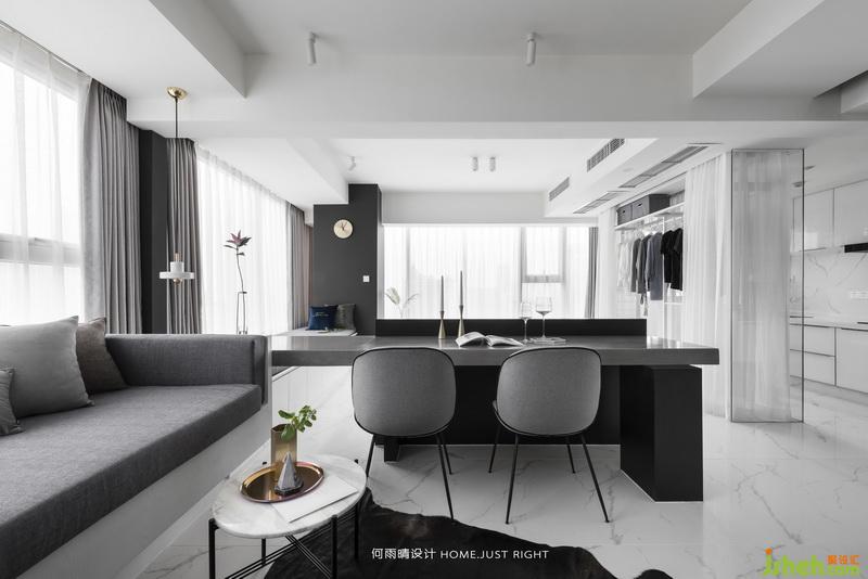 進(jìn)門那一刻,兩面全窗,被灑進(jìn)的陽光俘獲。對于他和她,一如既往最簡單開始——坐具。給冰冷的飄窗臺增添了豐富的情感,兩人座位剛剛好,坐墊軟硬亦剛好,按季節(jié)心情就這么懶散的微微蜷曲,這是生活上的浪漫奢侈。