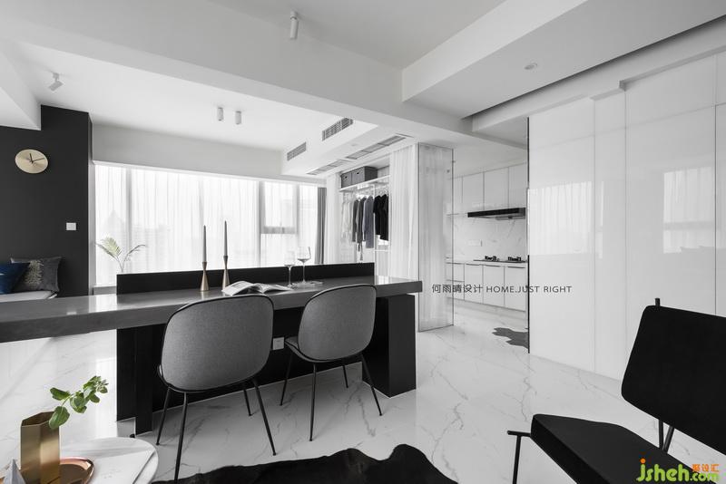 雖不足50平,空間卻盡顯開闊。餐桌作為起居室與睡眠空間的串聯(lián),沐浴著陽光與星光,都是用餐最好的調(diào)料。室內(nèi)設(shè)計師