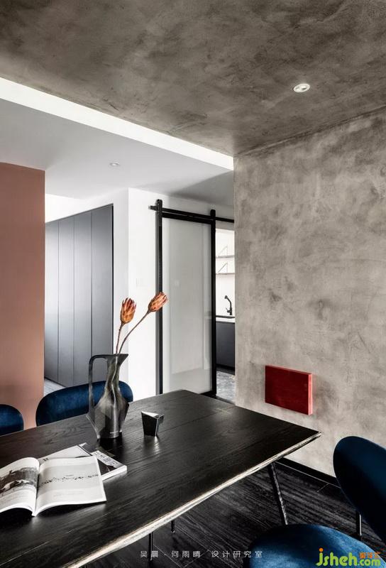 木材舊物利用,保留原始肌理,翻新賦予新的色彩,在粗狂的水泥質(zhì)感下得以歸屬。