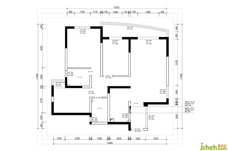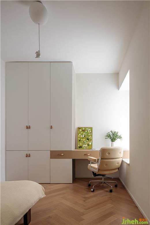 4.去掉主臥與多功能房中間墻體增加衣柜使用面積,同時斜切門洞擴大主臥室 跟衛(wèi)生間