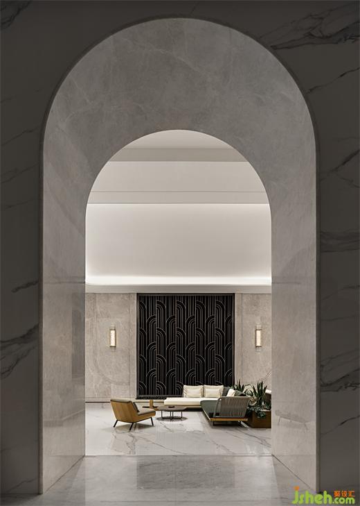 大堂設計組合堆疊豐富的視覺層次,
