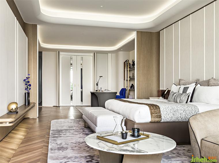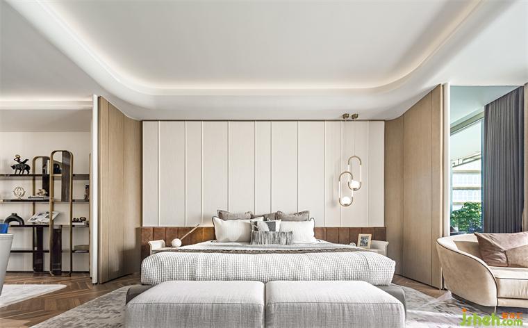 主臥強(qiáng)調(diào)品質(zhì)與奢華共生的調(diào)性。樣板間設(shè)計(jì)沉穩(wěn)且優(yōu)雅,強(qiáng)調(diào)精神上的追求,而相同材質(zhì)與不同肌理的碰撞更是可觸摸得到的真實(shí)生活。