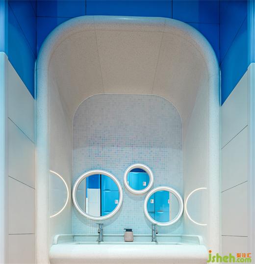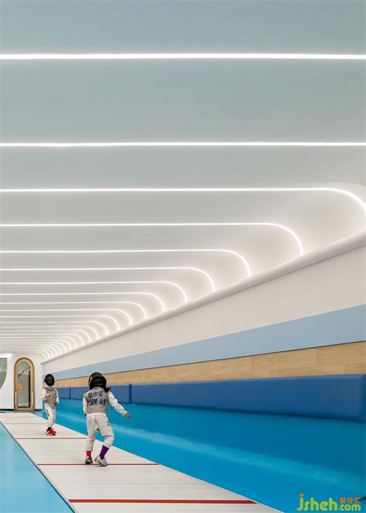 自上而下的開窗形成天花的視覺焦點,廈門幼兒園設(shè)計以流星劃過的軌跡提取設(shè)計元素形成光的記錄與序列,聯(lián)動的元素提取并不旨在傳達(dá)符號化的表象,而是試圖去傳達(dá)對觸及事物結(jié)構(gòu)本源的探尋與回歸自然堅守本我的追求。