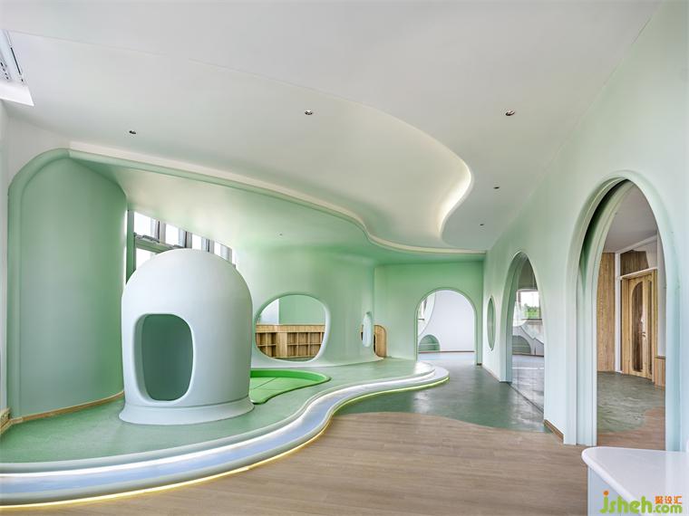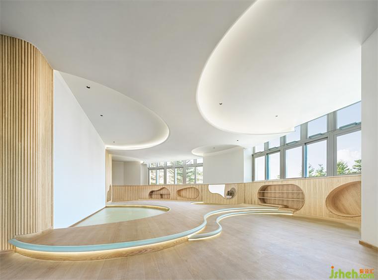 與自然同頻,流淌著獨特而細(xì)膩的情感,風(fēng)吹動在自然中塑造了優(yōu)美又動感的弧面造型,廈門幼兒園設(shè)計講述空間的延續(xù)與聯(lián)系。