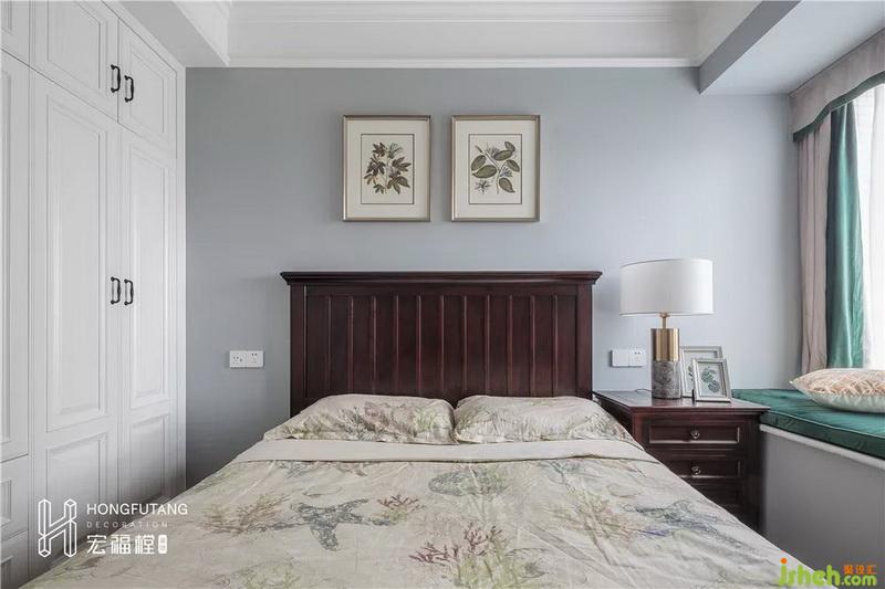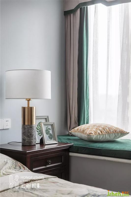 次臥室內(nèi)設(shè)計(jì)師延續(xù)主臥風(fēng)格,在空間布局上稍顯局促,所以只設(shè)立一個(gè)床頭柜;軟裝采用墨綠色,搭配棕色床頭柜,墨綠色有自然的氣息,棕色又能給人沉靜的氛圍,疲憊一天想要安眠與好夢。