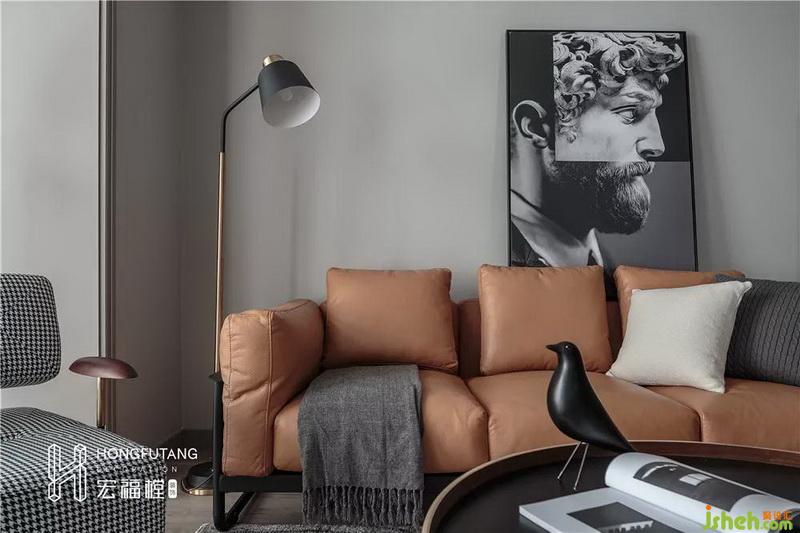 客廳空間以灰色為主,現(xiàn)代感強,空間氣質(zhì)冷冽,搭配皮質(zhì)三人沙發(fā)提高空間質(zhì)感;客廳空間顏色單薄,在不打破原有和諧色彩的情況下,選用千鳥格單人椅豐富視覺;客廳空間有限,選擇圓形茶幾減少對客廳空間占用的同時,方圓均衡,體現(xiàn)一種簡約的和諧感;電視柜選用懸空設(shè)計,減少滿柜的呆板,木色與灰色搭配,層次感更強,將電視墻插頭都放在開放式柜中,日后放置電視盒更為方便,也在視覺上遮丑;在客廳陽臺位置設(shè)立壁柜,合理利用空間,最大限度擴大公共收納空間;客廳采光充裕,選用無主燈設(shè)計。